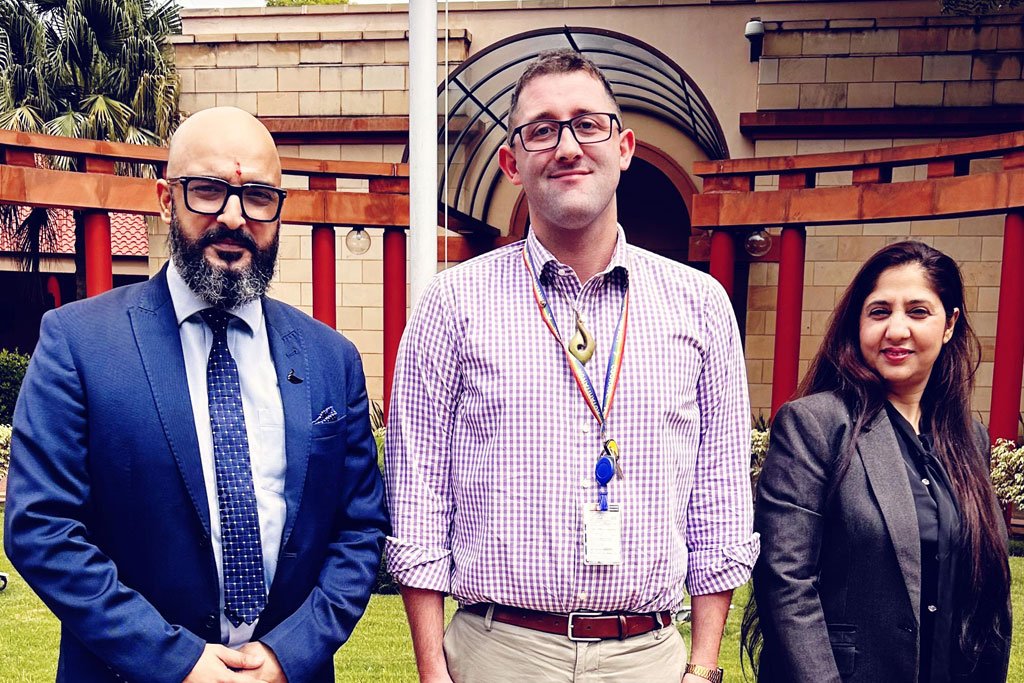 Rotarian Rohini Raina, Director General โ€“ India Federation for Investors & Global Traders (IFIGT), and Mr. Rajat Dhar, Director โ€“ Investments, IFIGT, engaged in a strategic meeting with Mr. Liam Finnigan, Head of Trade and Economic Section, New Zealand High Commission to India.