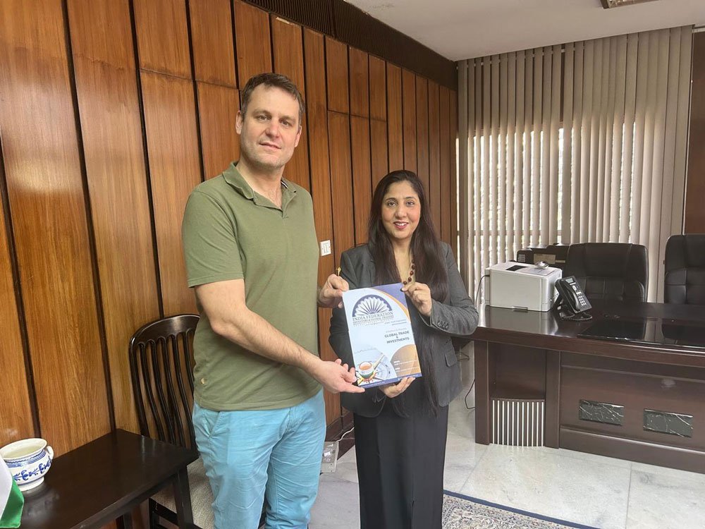 The leadership of the ๐ˆ๐ง๐๐ข๐š ๐…๐ž๐๐ž๐ซ๐š๐ญ๐ข๐จ๐ง ๐Ÿ๐จ๐ซ ๐ˆ๐ง๐ฏ๐ž๐ฌ๐ญ๐จ๐ซ๐ฌ & ๐†๐ฅ๐จ๐›๐š๐ฅ ๐“๐ซ๐š๐๐ž๐ซ๐ฌ (๐ˆ๐…๐ˆ๐†๐“), represented by Rotarian Rohini Raina, Director General, and ๐Œ๐ซ. ๐‘๐š๐ฃ๐š๐ญ ๐ƒ๐ก๐š๐ซ, Director โ€“ Investments, engaged in a strategic dialogue with ๐Œ๐ซ. ๐๐ž๐ซ๐ง๐ ๐’๐œ๐ก๐จ๐ฅ๐ญ๐ณ, Economic Counsellor at the ๐„๐ฆ๐›๐š๐ฌ๐ฌ๐ฒ ๐จ๐Ÿ ๐ญ๐ก๐ž ๐Š๐ข๐ง๐ ๐๐จ๐ฆ ๐จ๐Ÿ ๐ญ๐ก๐ž ๐๐ž๐ญ๐ก๐ž๐ซ๐ฅ๐š๐ง๐๐ฌ.